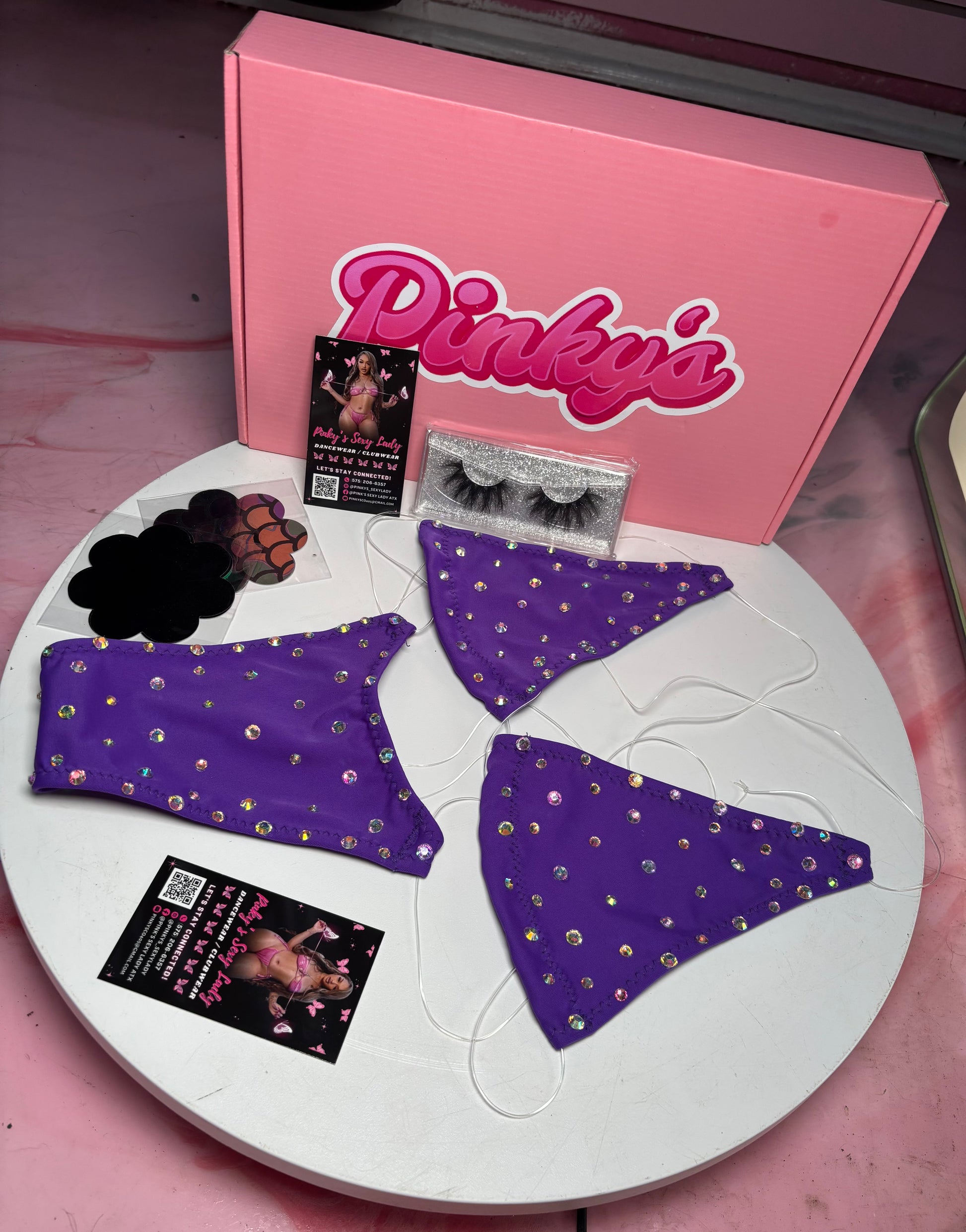 Brilla con luz propia con el microbikini Purple Haze . Este conjunto ultrasexy de dos piezas está confeccionado en un llamativo tejido morado, adornado con brillantes cristales para un efecto visual espectacular. Diseñado para ceñirse a tus curvas con un ajuste casi imperceptible, es la opción perfecta para llamar la atención.