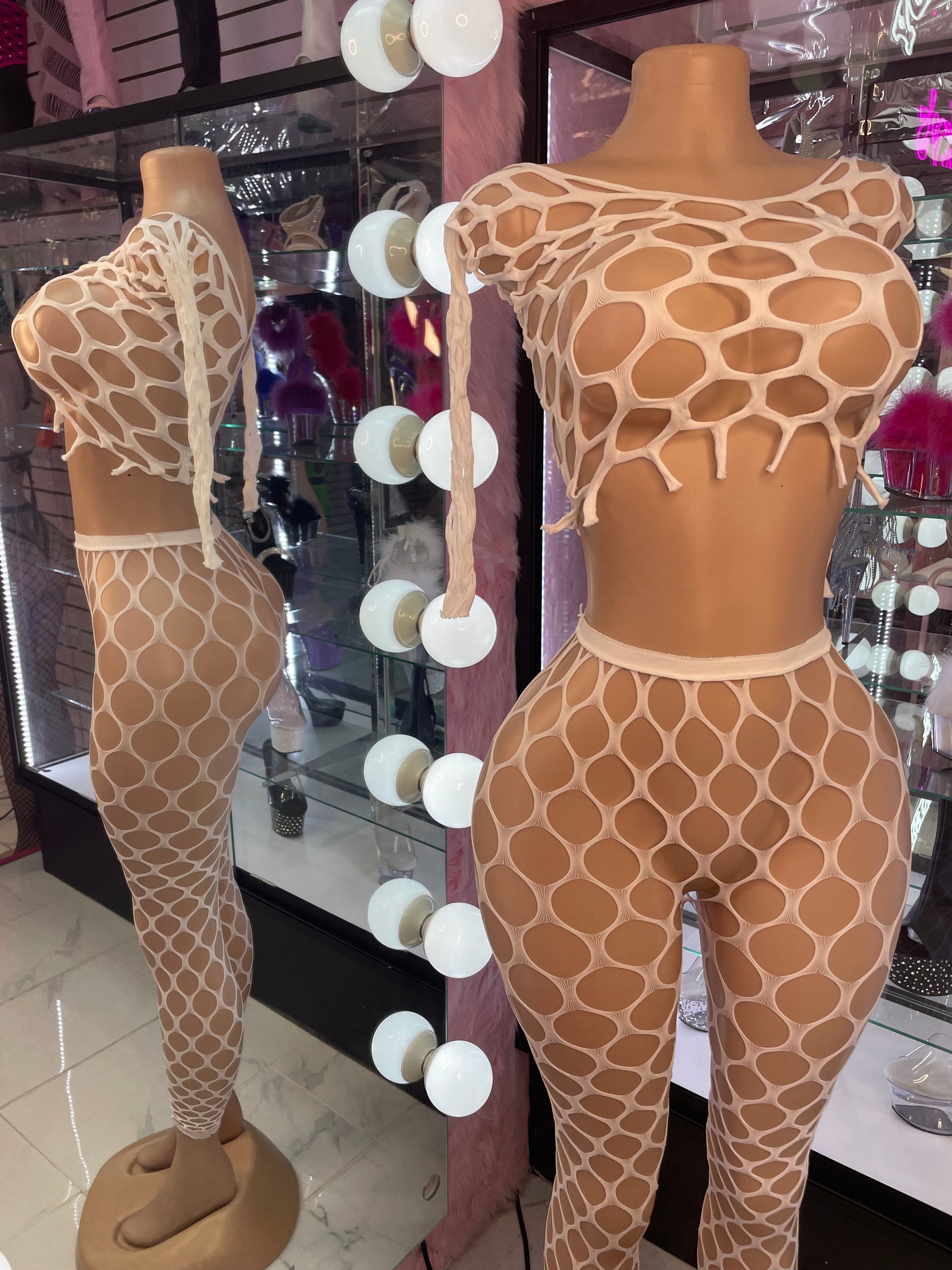 Cuerpo, curvas y pura actitud: el conjunto de 2 piezas Milk Marie es un look impactante, ideal para quienes se atreven a destacar. Este conjunto blanco cremoso y estilizado incluye un top corto de manga larga con aberturas y leggings de cintura alta a juego, ambos cubiertos con una malla circular extragrande para un look divertido pero a la vez peligrosamente sexy. Perfecto para cuando quieres ser el centro de atención.