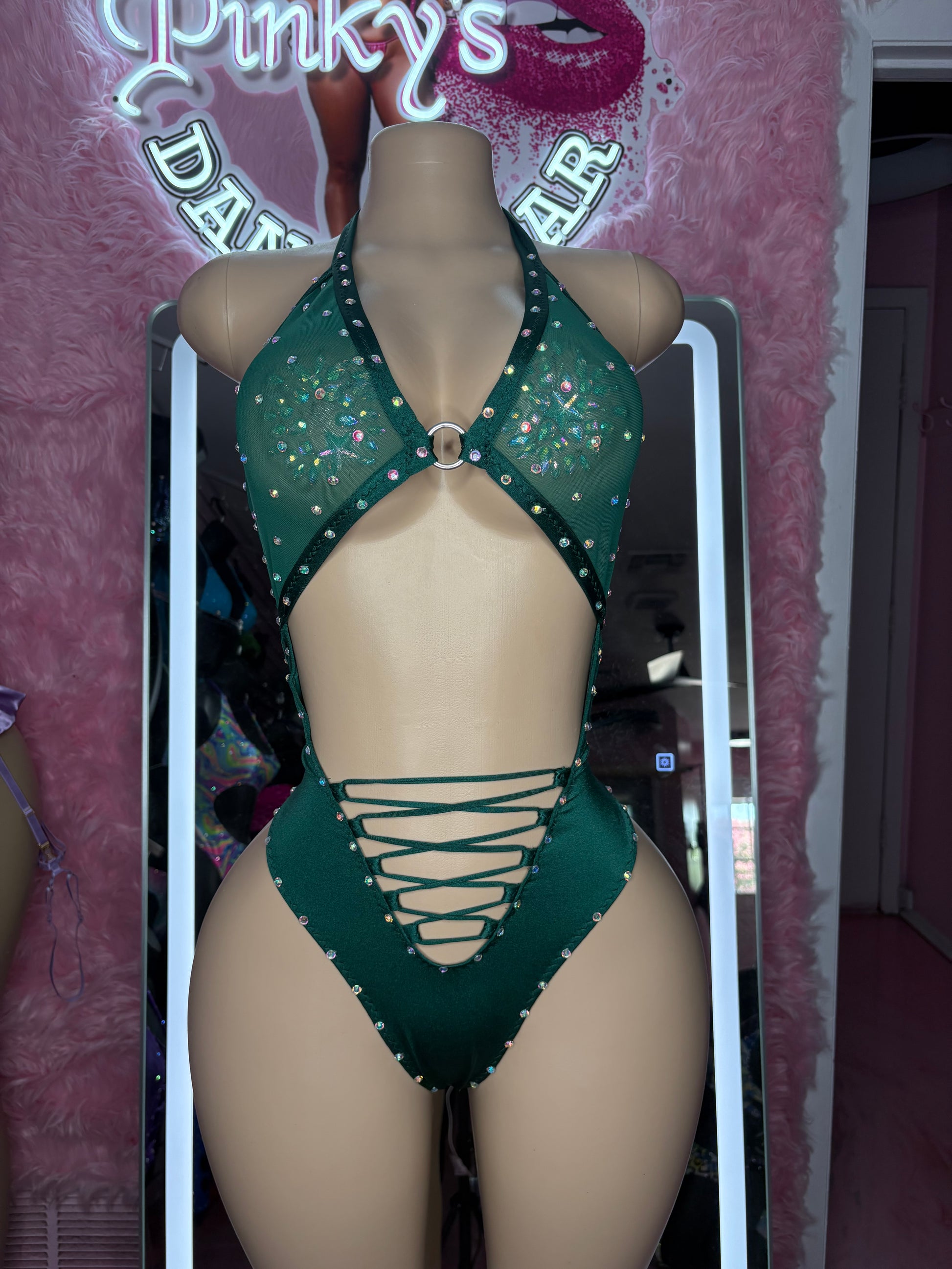 Conviértete en el centro de atención y atrae todas las miradas con el set Money Magnet. Este diseño verde esmeralda con detalles de pedrería incluye un top halter con un atrevido corte y una braguita de tiro alto con tiras que se adapta a cada curva. Un look de lujo que sin duda atraerá todas las miradas (y el dinero) hacia ti.