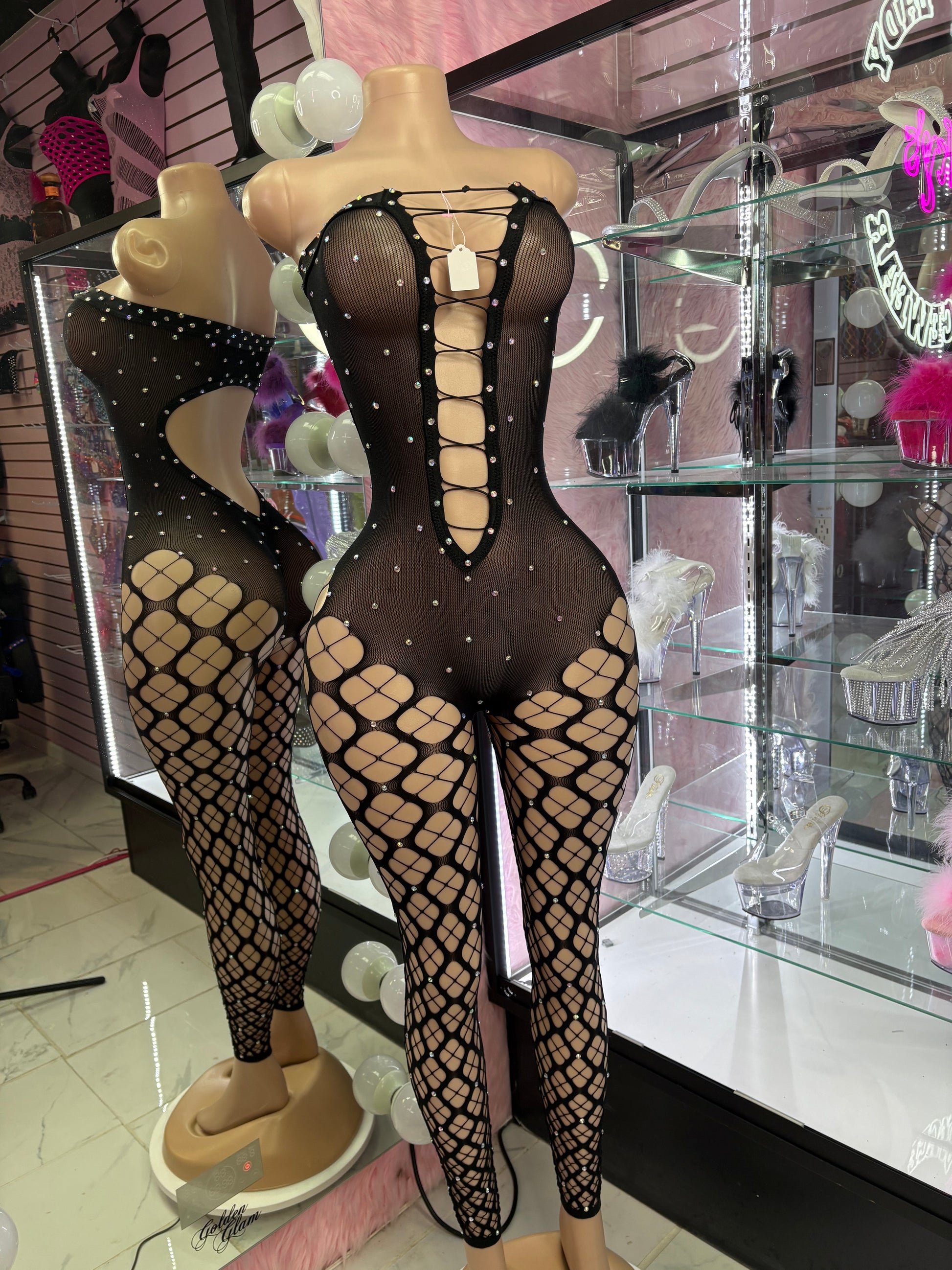 Atrevido y con mucha personalidad, el mono Ms. Coco está hecho para ser el centro de atención durante todo el día y triunfar en la noche. Con detalles de pedrería brillante, cierre de cordones y atrevidos cortes de rejilla, esta prenda es la combinación perfecta de glamour y vanguardia.
