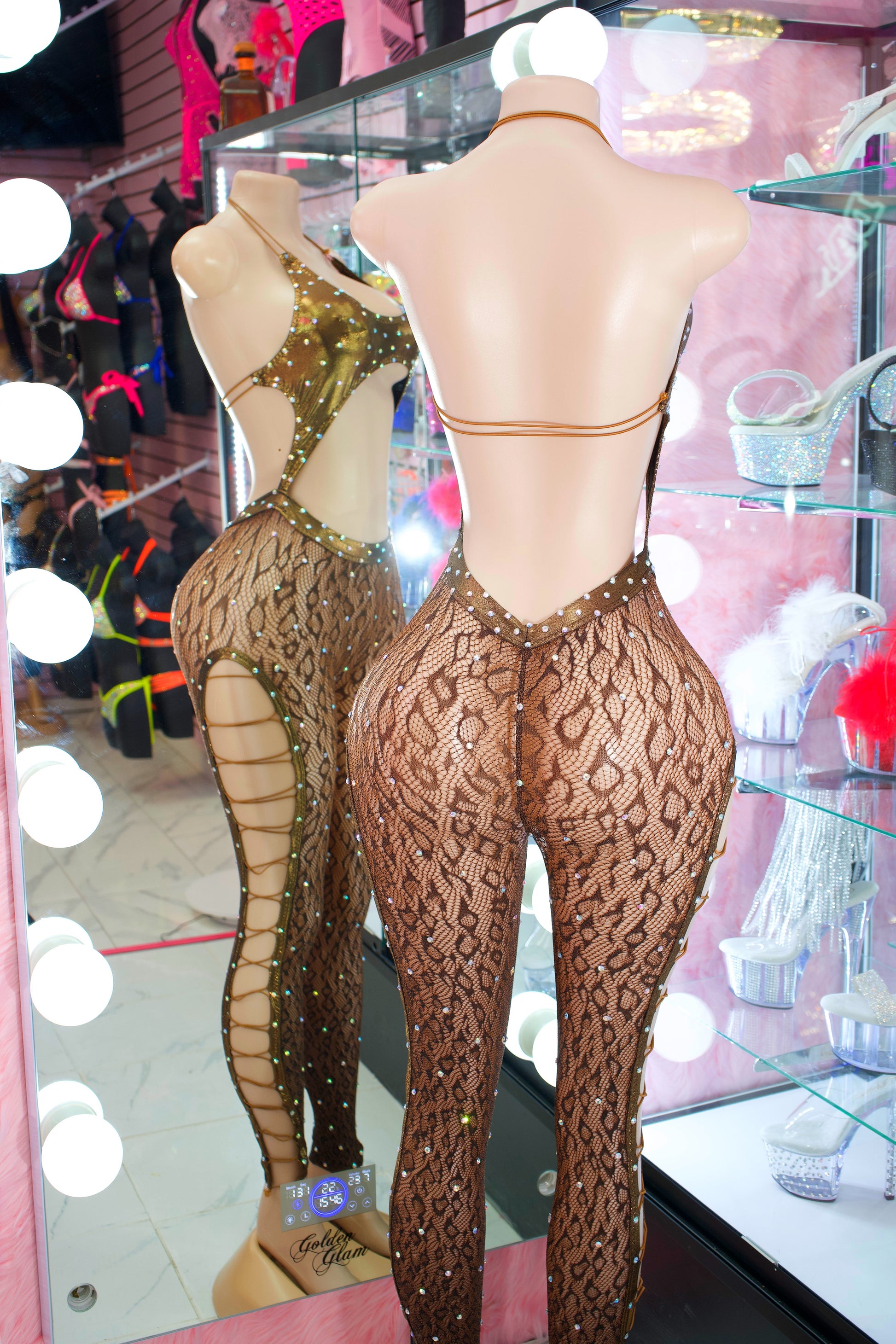 Saca a relucir tu lado más salvaje con nuestro mono con cordones y aberturas en bronce salvaje . Este sensual mono de una pieza presenta un top halter en bronce brillante con una abertura frontal audaz que realza tus curvas, combinado con pantalones largos de encaje con estampado animal que se ajustan a cada centímetro. Las tachuelas de pedrería captan la luz desde todos los ángulos, mientras que los detalles de cordones laterales atraen todas las miradas. Este es el look definitivo para bailarinas que buscan causar sensación y dejar atónitas.
